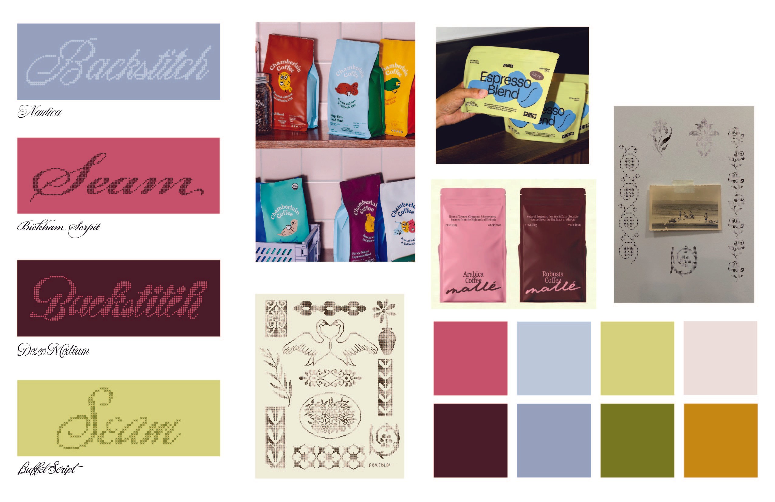 Cross stitch is a craft built on repetition, precision, and patience. These qualities translate naturally to coffee. Seam draws on the visual language of cross stitch to create a coffee brand that feels both handcrafted and deliberate. The brand name itself references the craft: a seam is where two things meet.